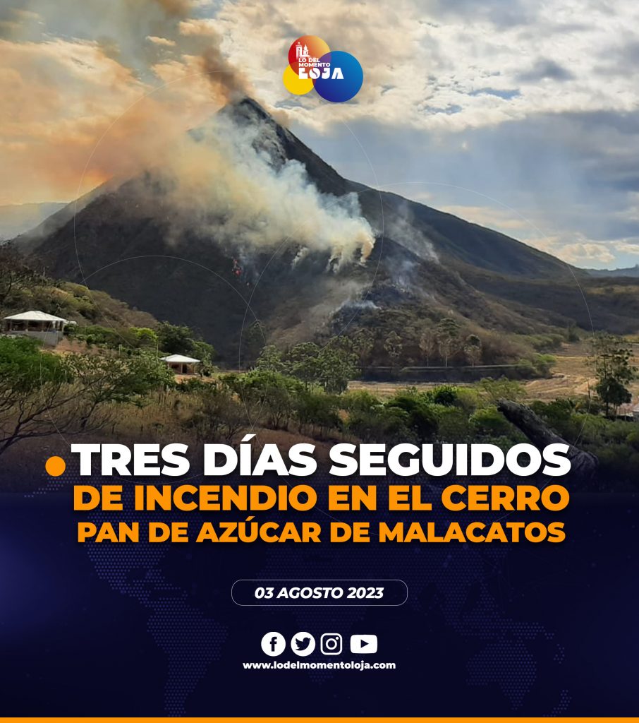 Los incendios siguen siendo el principal enemigo de las áreas verdes en campos y cerros del cantón Loja, en parroquias como Malacatos del cantón Loja también se sigue extendiendo las llamas por todo el cerro Pan de Azúcar ubicado por el barrio Ceibopamba llegando a su tercer día consecutivo, pese a los esfuerzos de la entidad bomberil y más entes anexos a la intervención de estos incidentes, los esfuerzos no han sido suficientes.
