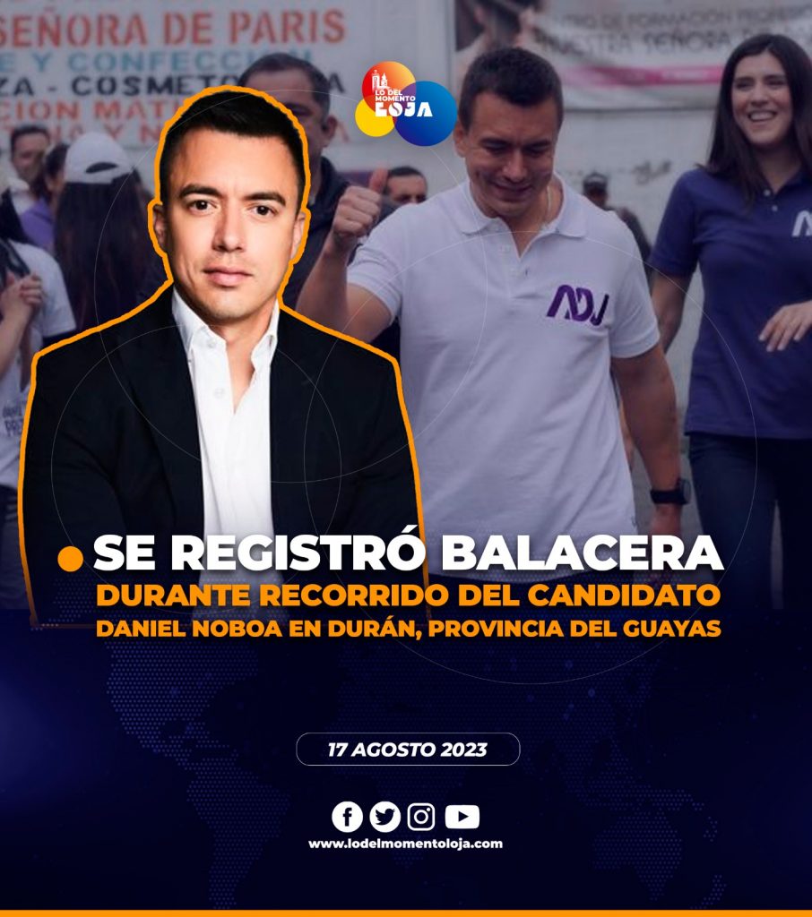🥺🔫🫂 ¡Atentado en recorrido! Durante un recorrido del candidato presidencial Daniel Noboa, en el cantón Durán, Provincia del Guayas, se registró una balacera. Según información oficial del equipo de comunicación del aspirante a la presidencia, el mismo se encuentra en buen estado.