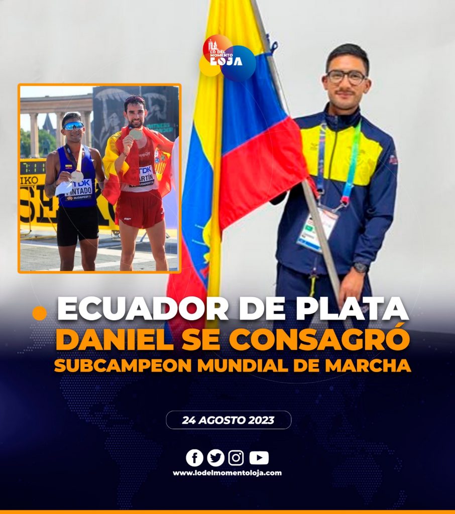 🥳🥈🇪🇨!Eres grande Daniel! El atleta ecuatoriano, Daniel Pintado, se proclamó vicecampeón mundial en marcha en la modalidad 35 kilómetros en Budapest, luego de dar pelea hasta el final contra el español Álvaro Martín, firmando un tiempo de 2 horas, 24 minutos y 30 segundos.