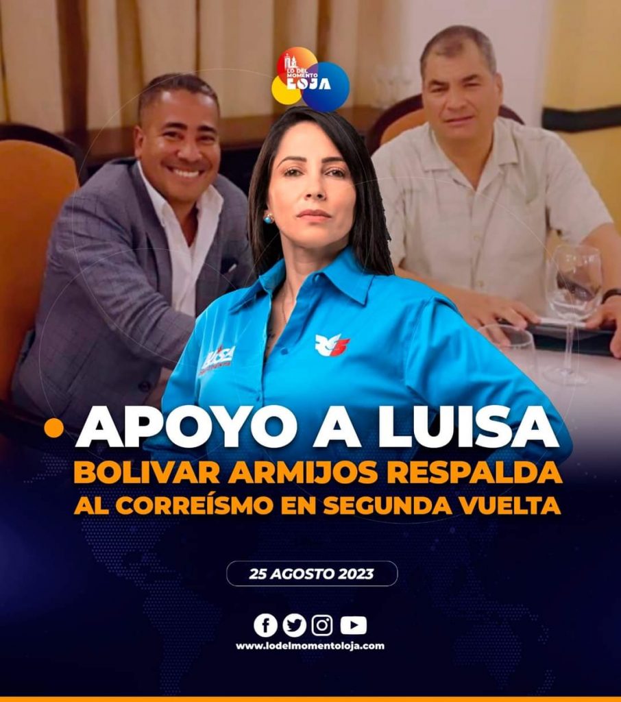 🫂🤝🏻🗣️ ¡Apoyo es apoyo! El ex candidato presidencial por el movimiento Amigo Bolivar Armijos, mismo que obtuvo algo más del 0,36 % del voto a nivel nacional, asegura que en la segunda vuelta electoral apoyará a la presidenciable del movimiento correísta (RC5), Luisa González.