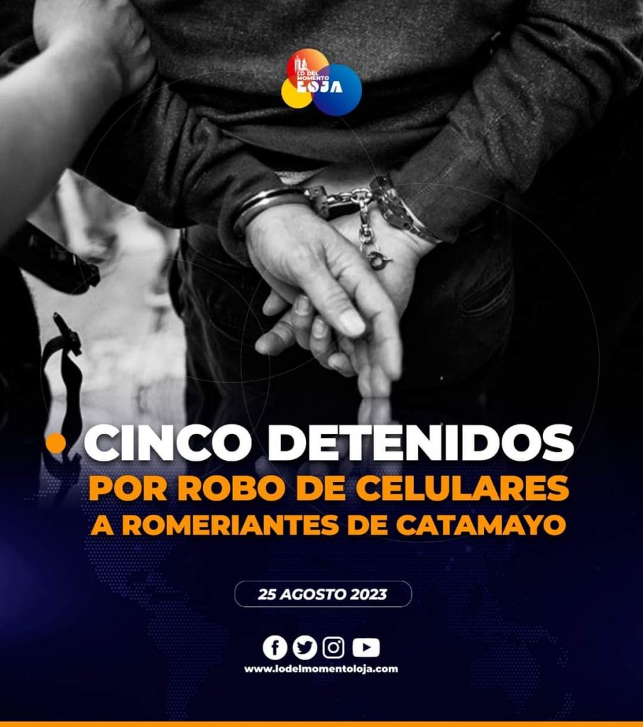 😤👊🏻👮¡No les importó nada! Cuatro mujeres y un hombre, presuntos miembros de un grupo delictivo y dedicados al robo y hurto de dispositivos móviles en Catamayo, fueron detenidos por personal policial a través de un operativo efectivo y puesto a órdenes de las autoridades competentes. Los uniformados presumen que estos actos se realizan durante aglomeración de personas.