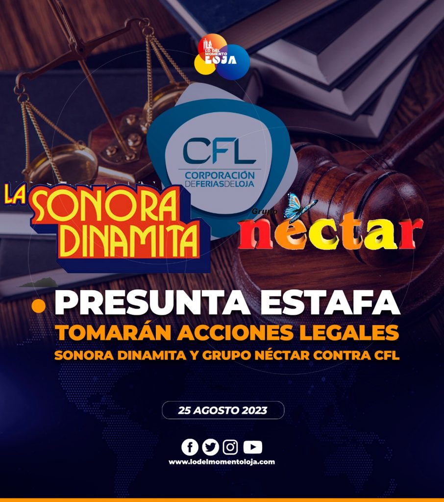 🧐👀🗣️ ¡Presunto caso de estafa! Representantes de La Sonora Dinamita y Grupo Néctar tomarán acciones legales tras difundirse información falsa acerca de su presentación en la noche de orquestas que ofrece la Feria de Loja.