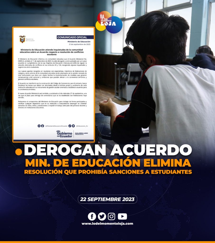 Todo empezó el pasado 11 de septiembre cuando se emitió el Acuerdo Ministerial No.00055-A, en el que se establecían directrices para el manejo de los procesos educativos restaurativos dirigidos a estudiantes.