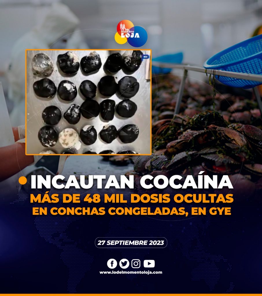 😱🦪👮 ¡Lo ocultaron entre las conchas! Personal Policial impidió que más de 48mil dosis de cocaína, ocultas en conchas congeladas, lleguen a España, vía Aérea. En el operativo antidrogas se realizó en las instalaciones del Aeropuerto de Guayaquil y se detectó a un ciudadano con el alcaloide en su equipaje.