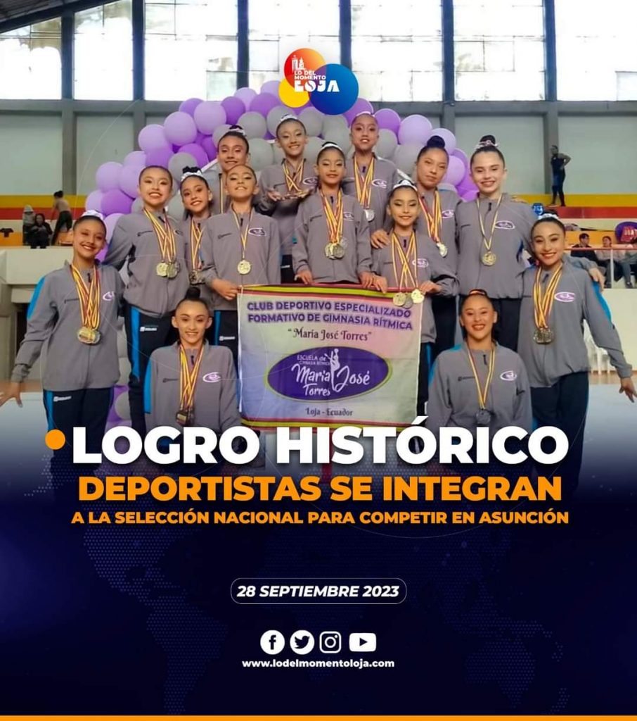 🇪🇨💃🎊 ¡Orgullo lojano! El Club de Gimnasia Rítmica María José Torres ha hecho historia al integrar a la Selección Nacional con un récord de 12 deportistas que representarán al país en el Campeonato Sudamericano de Gimnasia Rítmica Asunción 2023, buscando un top a nivel internacional.