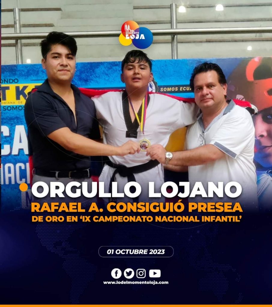 🇪🇨👏🏻🏅 ¡Campeón Nacional! El lojano Rafael Agurto Guzmán, consiguió la medalla de oro en el “IX Campeonato Nacional Infantil, Machala 2023” en la V Categoría +45 kg pre-cadetes C, de las formativas del Club Carvallo y seleccionado por la Provincia de Loja.