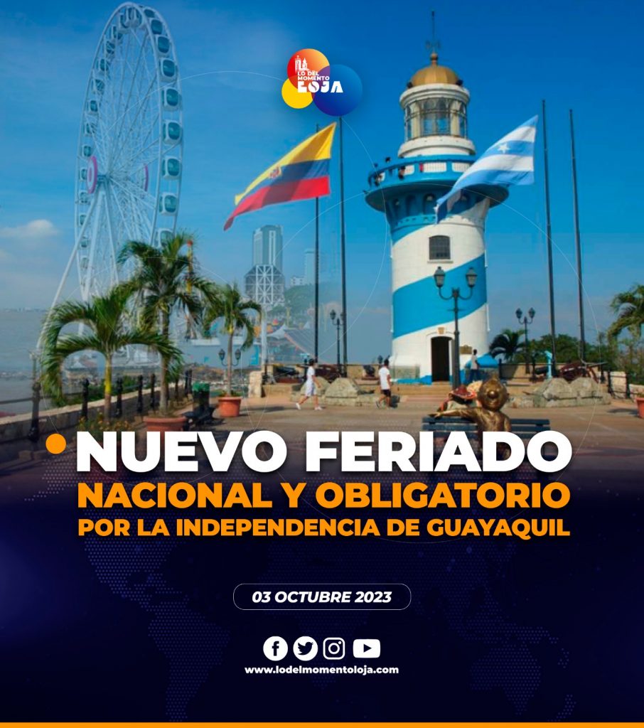 🇪🇨🎊👏🏻 ¡Tres días de descanso! Los ecuatorianos se alistan para un nuevo feriado nacional que se llevará a cabo el próximo 9 de octubre, por los 203 años de la Independencia de Guayaquil. El mismo será de tres días, comenzando el sábado 7 de octubre, siguiendo el domingo 8 y finalizando el lunes 9 del mismo mes.
