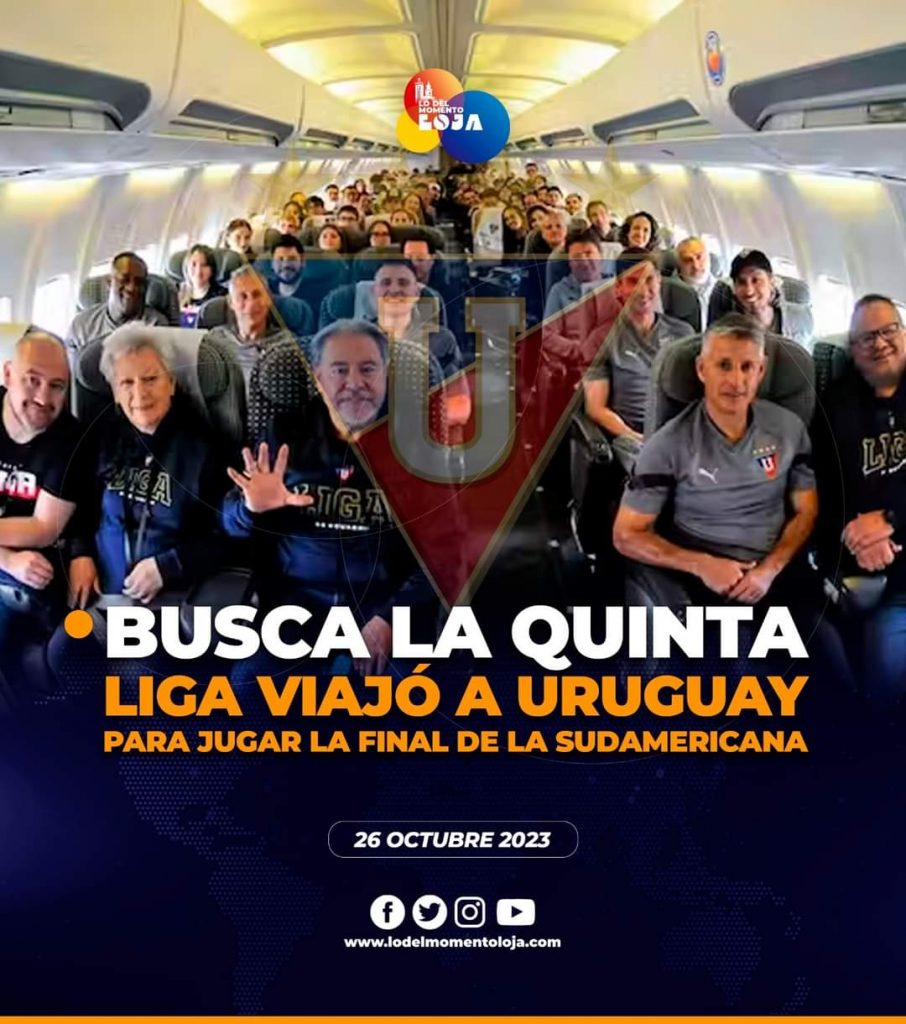 🇪🇨👏🏻🏆¡Listos para la final! La delegación de Liga de Quito viajó el miércoles a Maldonado, Uruguay, sede de la final única de la Copa Sudamericana, torneo que 12 años después vuelve a tener a los albos como protagonistas, para enfrentarse a su rival brasileño Fortaleza, el próximo 28 de Octubre de 2023, en el estadio Domingo Burgueño Miguel, con el arbitraje del venezolano Jesús Valencia.