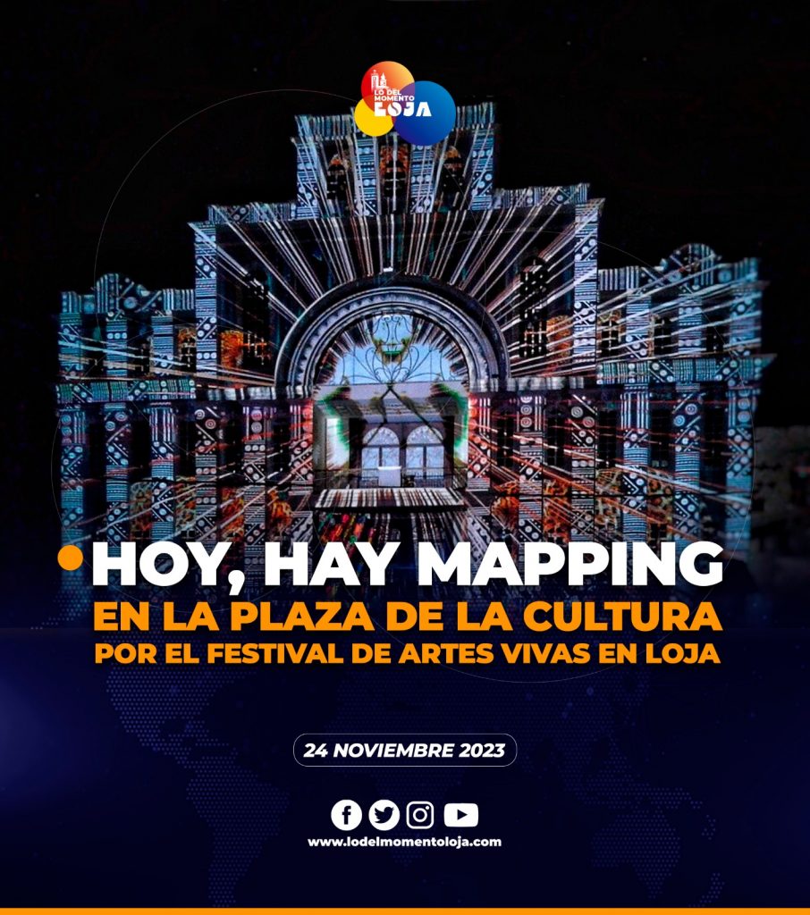 🎭🎉😱 ¡Es hoy, es hoy! Gracias a la empresa privada, este 24 de noviembre, a partir de las 19h00, la ciudadanía en general podrá disfrutar del denominado ‘Mapping’ en la Plaza de la Cultura (calles Olmedo y Rocafuerte), cómo parte de la programación del Festival Internacional de Artes Vivas Loja 2023.
