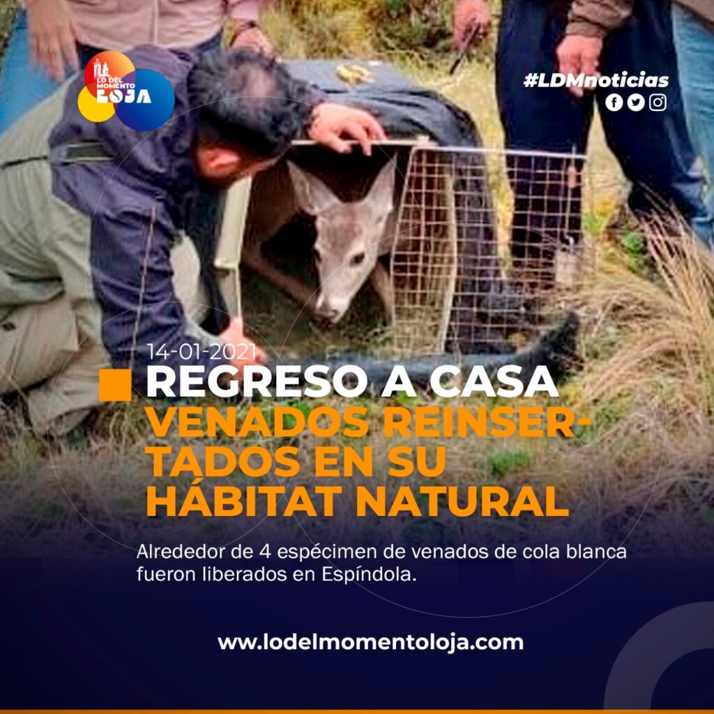 Con el apoyo de guardaparques del Parque Nacional Yacuri, personal de la Dirección de Gestión Ambiental y del Zoológico “Orillas del Zamora” del Municipio de Loja, fueron reinsertados en su hábitat natural alrededor de 4 venados de cola blanca (Odocoileus virginianus).