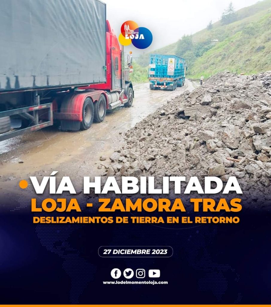 😱⚠️🚘 ¡Por la lluvia! La vía Loja – Zamora (a la altura del sector El Retorno), se encuentra parcialmente habilitada al tránsito vehicular, tras el deslizamiento de tierra generado por las fuertes lluvias. Maquinaria se encuentra en el lugar haciendo trabajos de limpieza, debido a la gran presencia de lodo sobre la calzada.