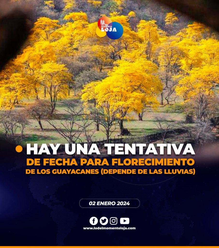 😱🌼🌧️ ¡Fechas tentativas! Tras las intensas lluvias de invierno que cayeron el pasado mes de Diciembre en Mangahurco (Zapotillo), provincia de Loja, se espera como fecha tentativa que el florecimiento de los Guayacanes, se dé, del 4 al 9 de enero 2024, en dónde se podría disfruta del espectáculo natural de entre 5 a 8 días. Aunque aún no existe pronunciamiento oficial de los GADs parroquiales competentes.