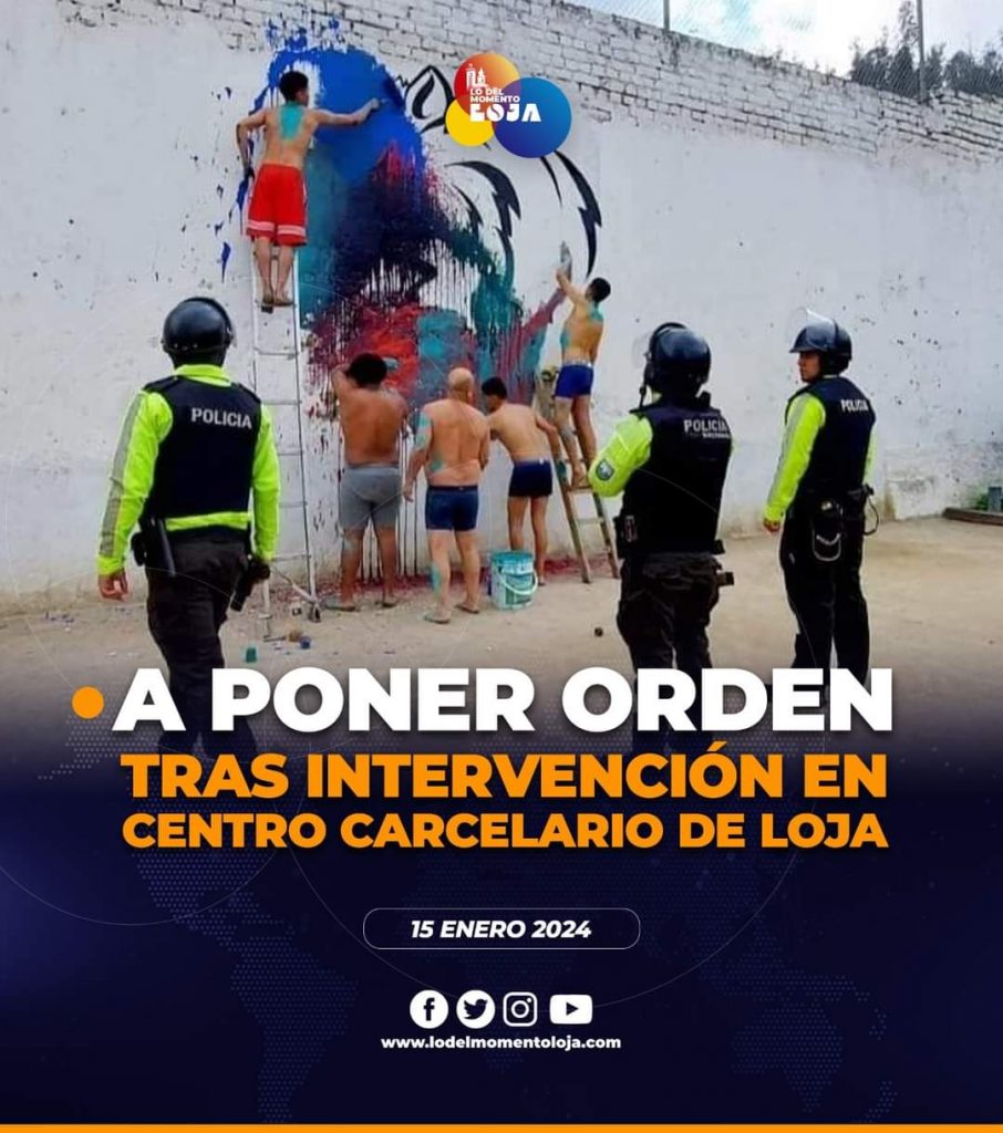 😱👊🏻👏🏻 ¡Cómo a niños! Tras la intervención y control en el centro carcelario, por parte de Policía Nacional y Fuerzas Armadas, los internos fueron sometidos por los agentes del orden para borrar figuras satánicas y ‘logos de bandas’ pintados al interior de la misma. Labor que ha sido aplaudida por la ciudadanía.
