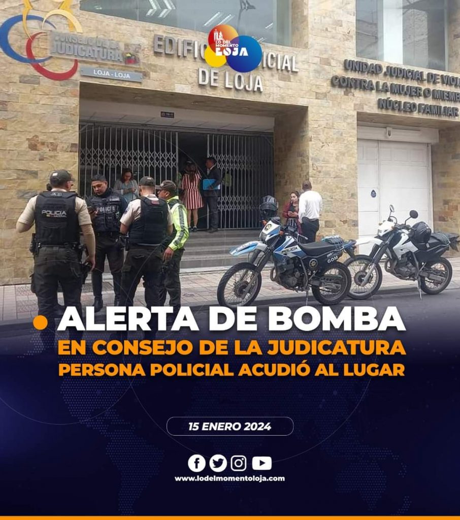 😱🚨🆘 ¡Caos en el casco céntrico! Se registró una alerta de amenaza de bomba en las instalaciones del edificio Judicial de Loja, personal de la Policía Nacional del Ecuador toma procedimiento para verificar.