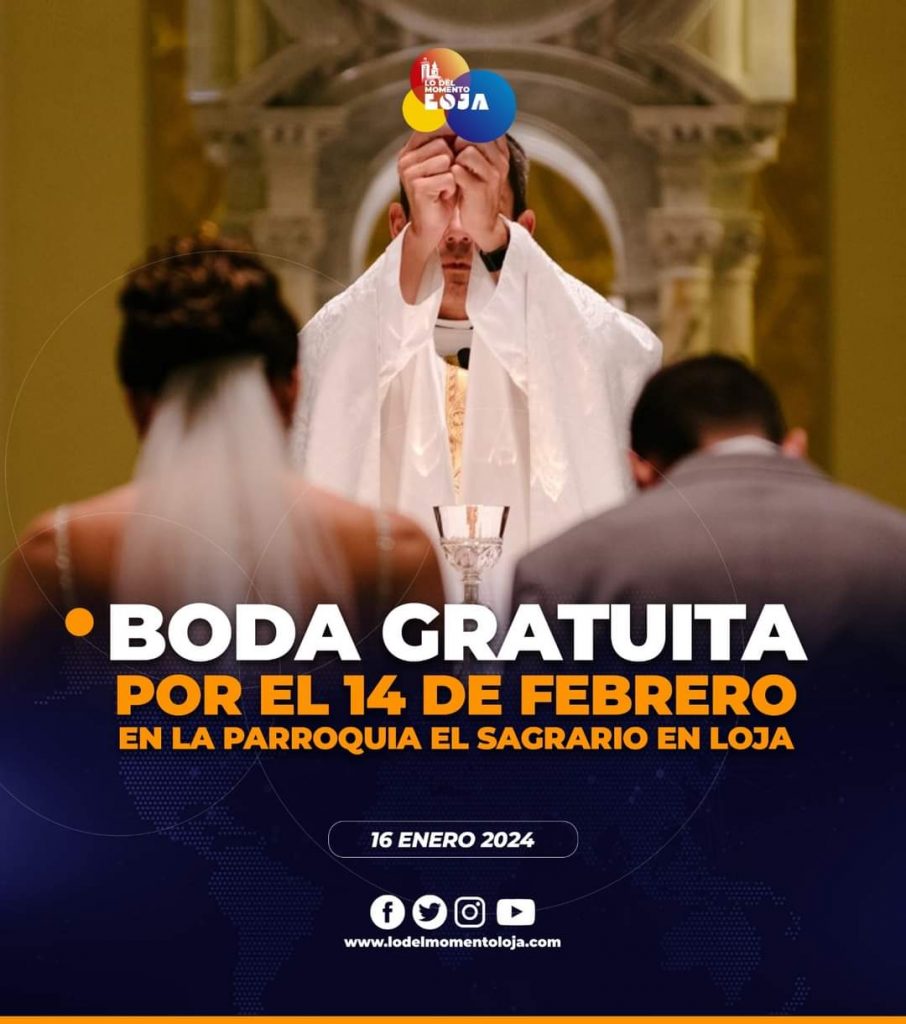 👰🏻♀️🤵🏻♂️⛪ ¡Matrimonio Gratuito! En honor al día del amor y la amistad (14 de Febrero), la parroquia El Sagrario realizará una ceremonia gratuita para las parejas que decidan contraer matrimonio o renovar sus promesas matrimoniales. Las inscripciones estarán vigentes hasta el 26 de enero.
