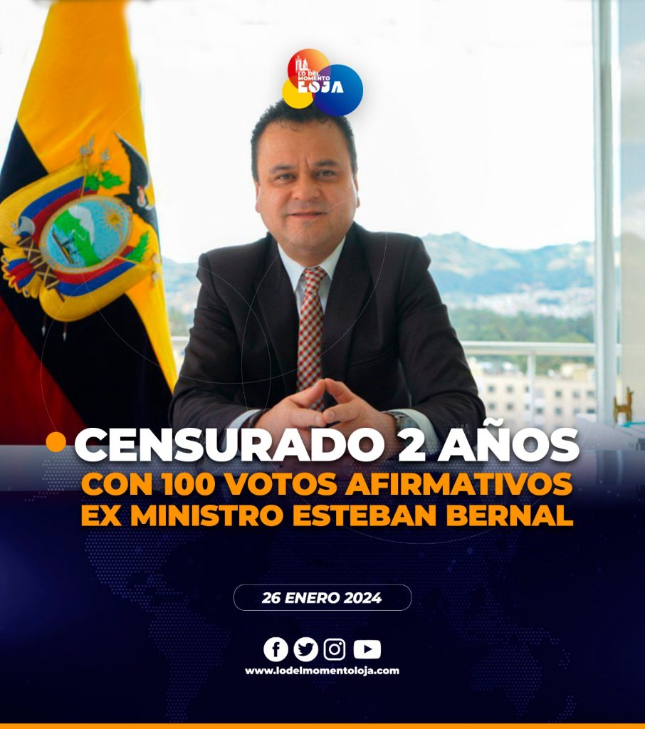 🗣️🧐👉 ¡Censurado por 2 años! Con 100 votos afirmativos, el pleno de la Asamblea Nacional censuró la noche del 25 de enero al exministro de Inclusión Económica y Social del gobierno de Guillermo Lasso, Esteban Bernal, por incumplimiento de funciones.