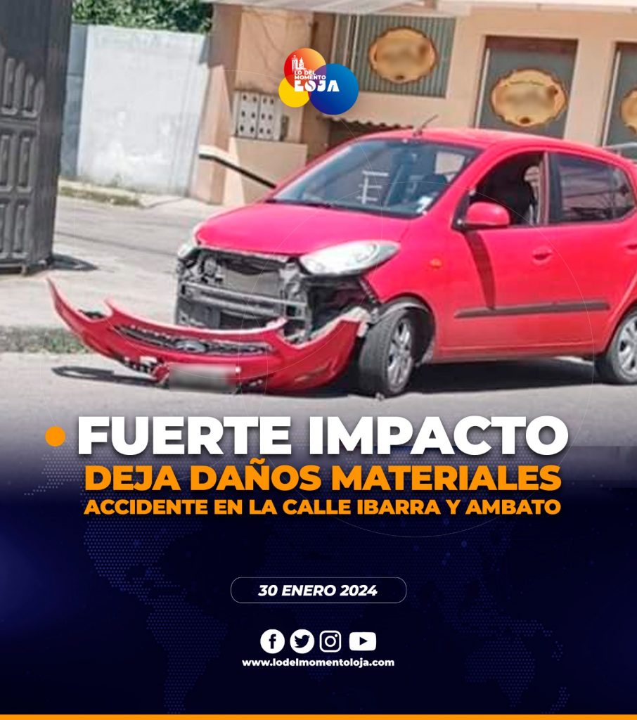 😱🚘💥 ¡Accidente en Loja! En horas de la tarde de este 30 de enero, a la altura de las calles Ibarra y Ambato, se registró un accidente de tránsito que deja como saldo cuantiosos daños materiales.