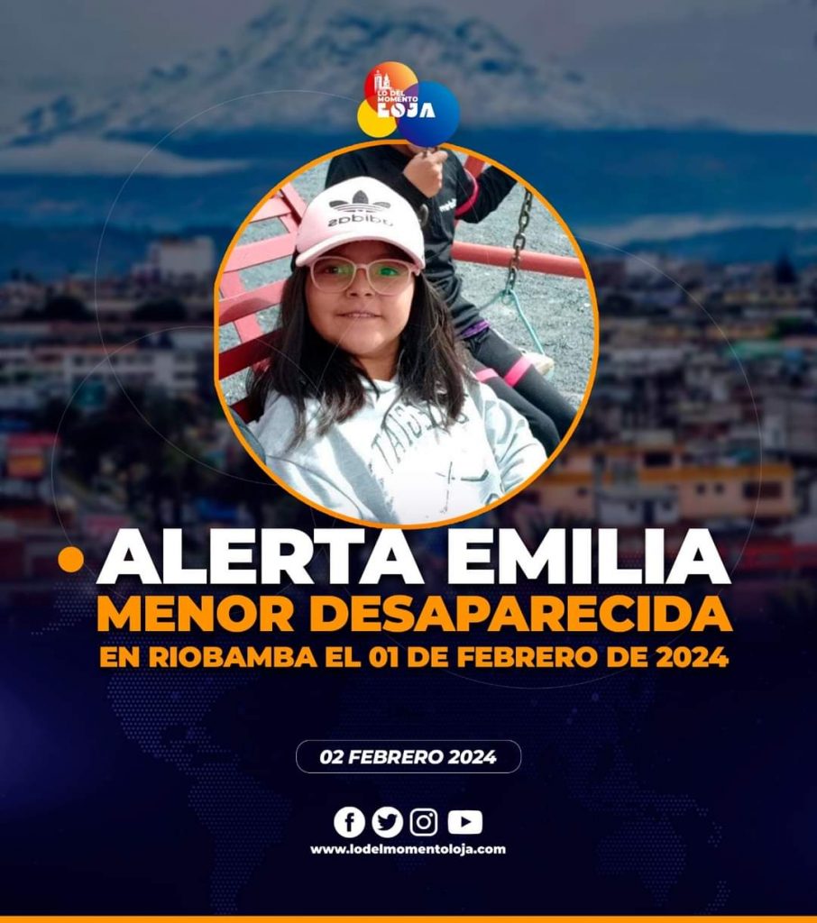 🔴😱🗣️ ¡Activan Alerta Emilia! Fiscalía General del Estado informó que la menor Dana Alejandra Ramos Pilataxi, de 8 años, despareció en la ciudad de Riobamba el pasado jueves 1 de febrero de 2024.