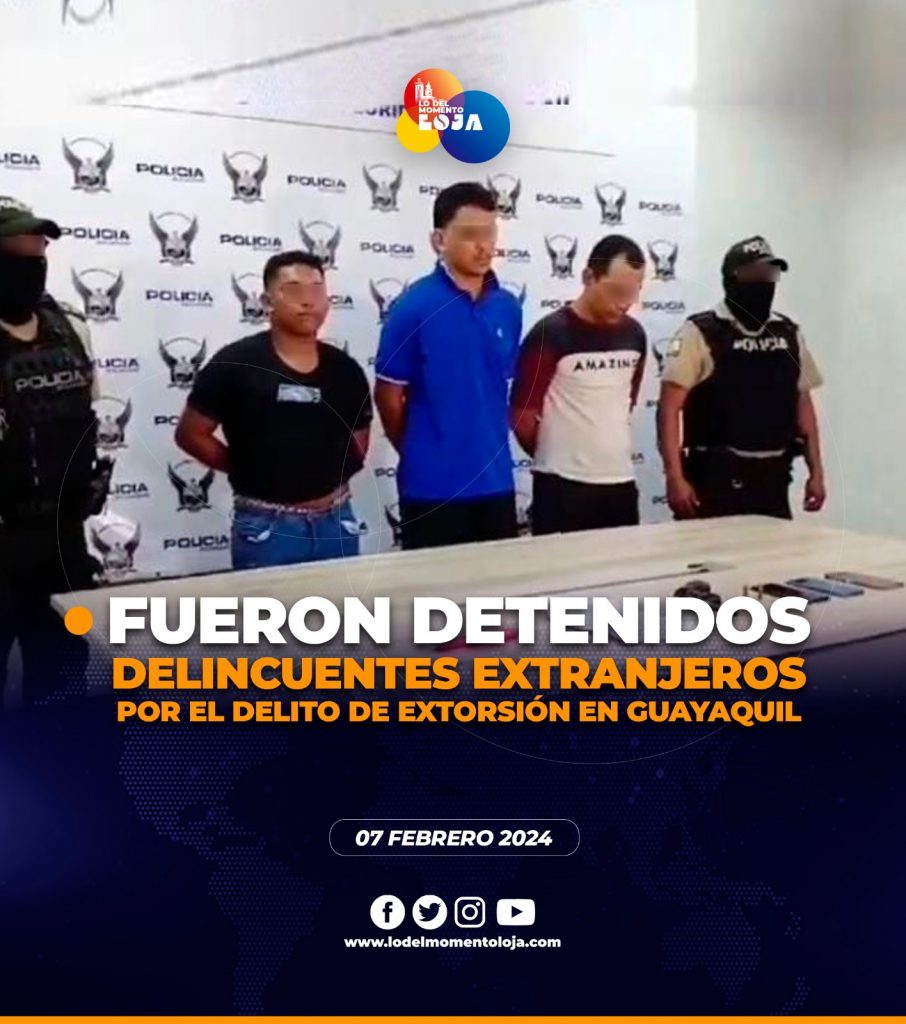 👮🏻♂️👏🏻👥 ¡A la cárcel! Tres delincuentes extranjeros, que intimidaban a los dueños de varios locales y viviendas de la Juan Montalvo (GYE) y quiénes en su poder tenían panfletos y explosivos con los que sometían a sus víctimas, fueron capturados por la Policía Nacional, tras un operativo de seguimiento. Ciudadanía exige extradición para los malhechores.