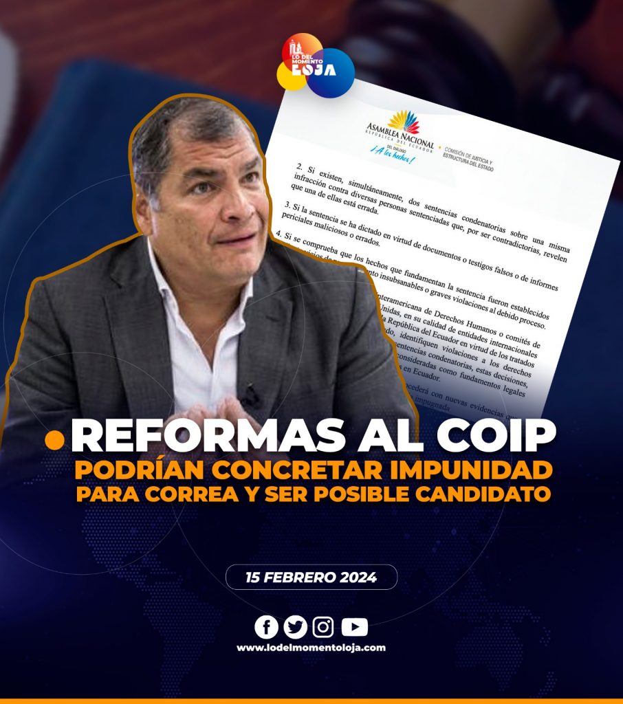 😱🗣️📝 ¡Tendrá una posibilidad! Mientras que la Fiscal General del Estado, rechazo las reformas propuestas, el movimiento Construye ha advertido sobre las mismas para el Código Orgánico Integral Penal (COIP), las cuales incluirían nuevos parámetros para el recurso de revisión de sentencias. Según esto reformas podrían allanar el camino para que Rafael Correa, líder de la Revolución Ciudadana (RC), recupere sus derechos políticos y se postule como candidato presidencial.