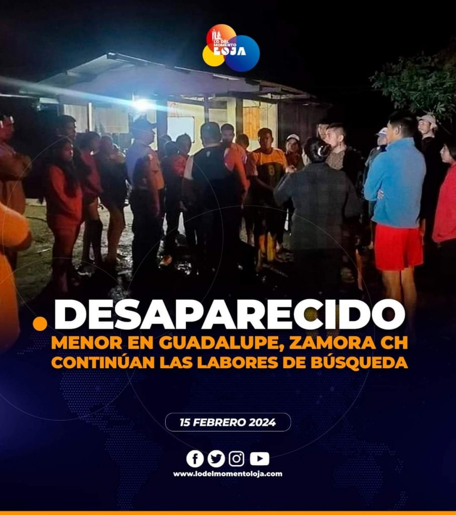 😱🥺🕵🏻♂️ ¡Ayudemos en su búsqueda! A la altura del sector El Progreso de la parroquia Guadalupe, provincia de Zamora Chinchipe, fue reportada la desaparición de un menor de edad, junto al río Yacuambi. Personal del Cuerpo De Bomberos Zamora retoman las labores de búsqueda para localizar al menor.
