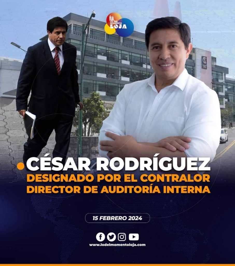 👨🏻🔎🔑¡Otro lojano más! El ex asambleísta César Rodríguez, que ha venido siendo actor político con el expresidente Correa, Lenin Moreno, vocero de Unión Ecuatoriana y hasta candidato a la Prefectura del ARE en Loja en las seccionales pasadas, fue designado por el Contralor General como Director de Auditoría Interna. Un lojano más que ocupará un cargo importante en una institución del Estado.