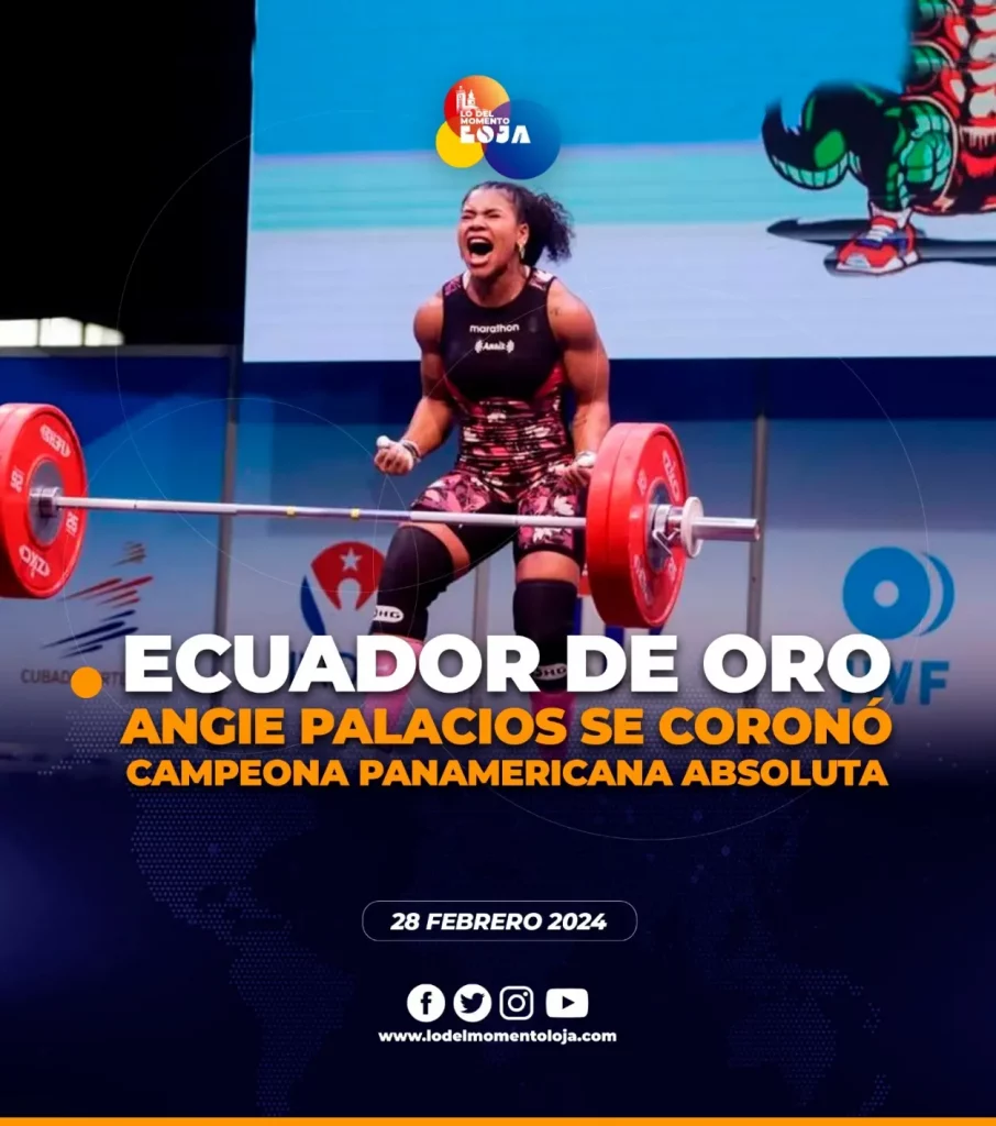 🇪🇨🏆👏🏻 ¡Triple medalla de oro! La deportista ecuatoriana Angie Palacios Dajomes se coronó campeona panamericana absoluta de levantamiento de pesas en la división 71 kg.