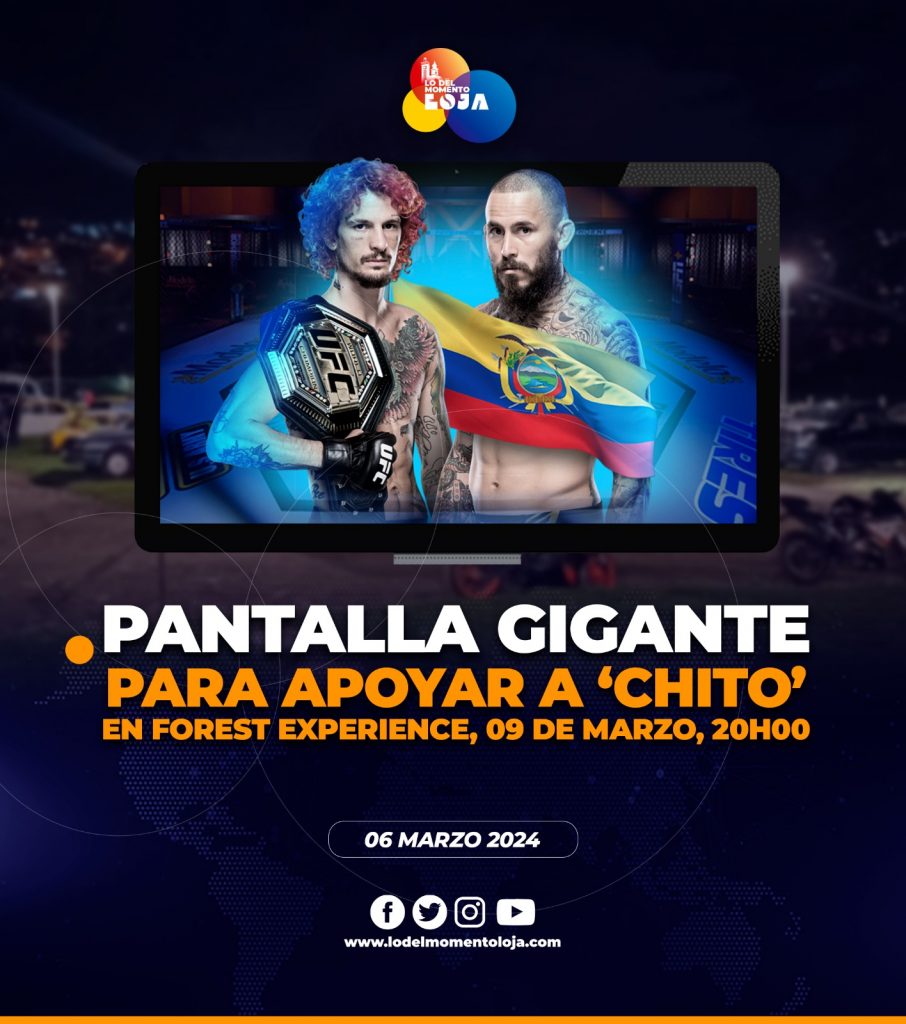 🇪🇨🥊🖥️ ¡A disfrutar en grande! La empresa Velocity y Forest Experience, se unen para presentar en pantalla gigante la pelea por el título en la categoría Peso Gallo, entre el ecuatoriano Marlon ‘Chito’ Vera vs Sean O’Malley, este 09 de marzo a partir de las 20h00.