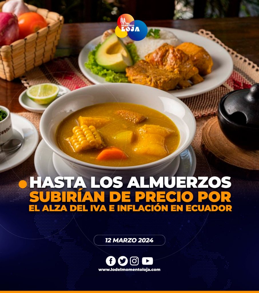 😱💸🍛 ¡Todo menos esto! A partir del mes de abril, el precio de los almuerzos podría incrementarse no solo por el alza del Impuesto al Valor Agregado (IVA), del 12% al 15%, sino también por la inflación de varios alimentos que han elevado los costos. Por lo que es probable que el alza de precios de los almuerzos supere los tres puntos porcentuales que incrementará el IVA.