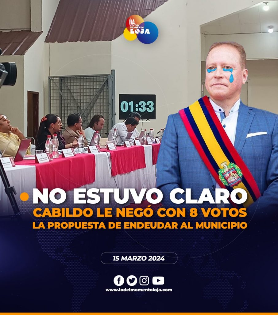 🗳️🤑👉 ¡Le dijeron que no! Con 8 votos en contra, los concejales del Cabildo de Loja, no aprobaron el proyecto “Adquisición de maquinaria pesada para el Municipio de Loja y la autorización del endeudamiento” ¿la razón? La falta de presupuesto.