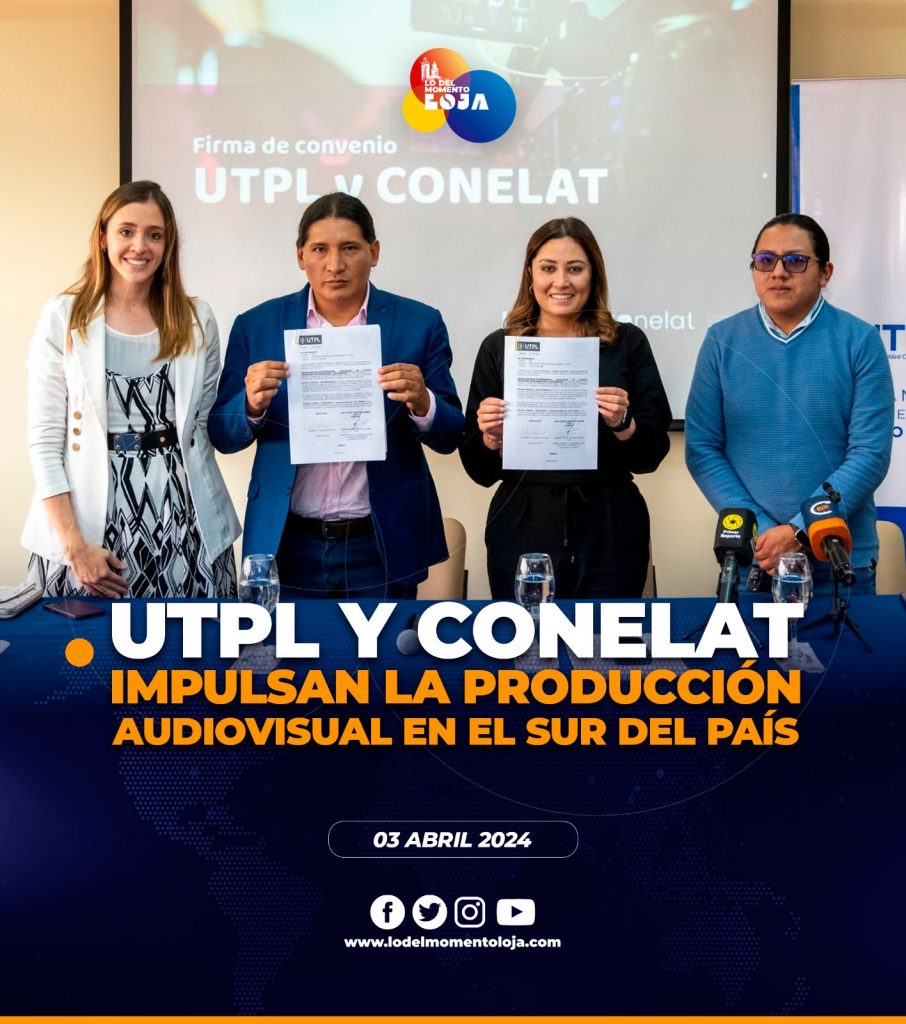 📚🤝🏻🎥 ¡Firma de convenio! La UTPL a través de su Departamento de Comunicación, y el Consorcio de Networks de Latinoamérica (Conelat), firmaron un convenio interinstitucional con el propósito de impulsar la producción audiovisual en el sur del país. Una de las primeras actividades contempladas, como parte del acuerdo, es la realización de un seminario de escritura creativa para ficción audiovisual. Este taller se llevará a cabo el próximo 6 de abril.