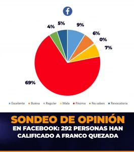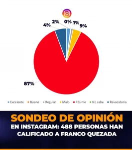 😱📝🚫¡Datos nada favorables! Un sondeo de opinión no oficial realizado por LDM a nivel digital fue realizado a finales de marzo 2024, aquí, se le consultó a la ciudadanía sobre qué calificación le pondría a la gestión del Alcalde de Loja, Franco Quezada, luego haber transcurrido diez meses de administración, la ciudadanía lojana calificó con un 69% (Facebook) y un 87% (Instagram) como pésima la gestión del burgomaestre.