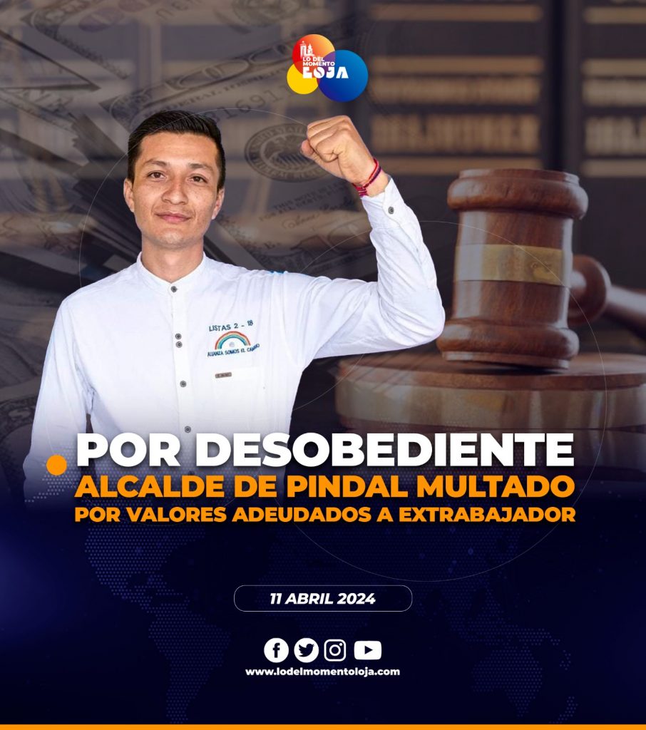 🙄💸👨🏻⚖️¡El que hablaba de porcentaje! El burgomaestre de Pindal, Julio Vismar Guerrero fue multado por el Juez de la Unidad Multicompetente del cantón Pindal, con un valor de USD 92.00 diarios, hasta que pague los valores adeudados a un extrabajador (USD 12.025 en total), por acogerse a la indemnización de retiro voluntario.