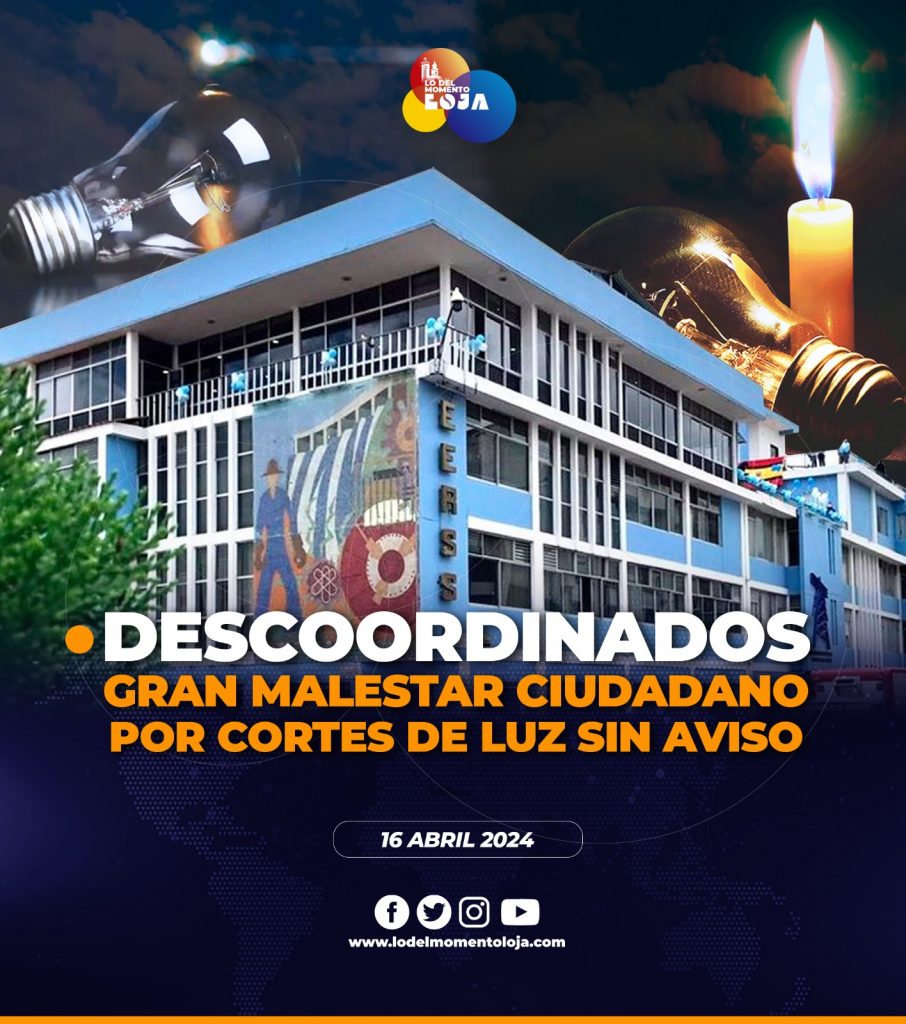 😱💡🚦¡Ni una, ni otra! A pesar que desde la misma Empresa Eléctrica Regional del Sur (EERSSA) se emitió los diferentes horarios en cuanto a los cortes de energía eléctrica a nivel local y provincial, estos no concuerdan con lo planificado, y en horas de la mañana varios sectores no contaban con el racionamiento del sistema eléctrico, causando inconformidad e inconvenientes en la ciudadanía y transporte. Incluso, en más de 2 ocasiones el servicio se restablecía y a los pocos minutos se volvía a ir. Aún se desconoce si estos incidentes han generado pérdidas económicas en los electrodomésticos de las familias lojanas.