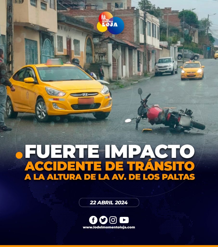 🚕💥🏍️¡La imprudencia! Hace unos minutos se registró un accidente de tránsito a la altura de la Av. Los Paltas, que deja como saldo varios daños materiales. El suceso se dio entre un taxi y una moto.