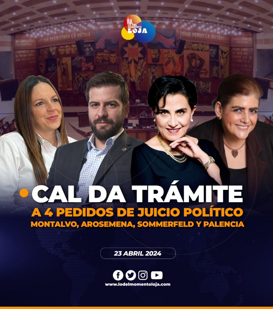 ✅👨🏻⚖️🗣️ ¡Tienen luz verde! El Consejo de Administración Legislativa (CAL), de la Asamblea Nacional, calificó a trámite cuatro pedidos de juicios políticos contra dos funcionarias del gobierno de Daniel Noboa y dos exfuncionarios de Guillermo Lasso. Los pedidos son en contra de: Mónica Palencia, ministra del Interior y Gabriela Sommerfeld, Canciller de la República, por el presunto incumplimiento de funciones, mientras que Pablo Arosemena, exministro de Economía y Finanzas; y, Andrea Montalvo, exsecretaria de Educación Superior por pedido de censura.