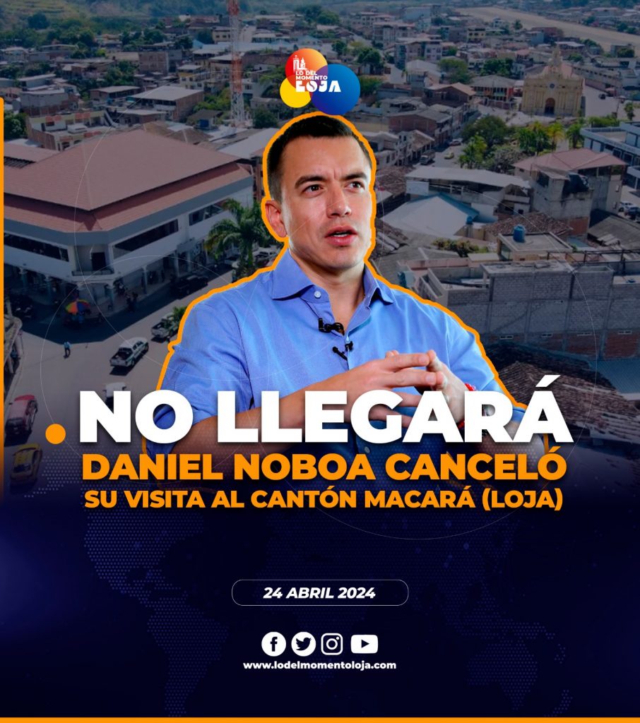 🙄🗣️🗓️ ¡Cómo si fuera chiste! Por cuarta ocasión, el primer mandatario Daniel Noboa ha cancelado su visita al cantón Macará (Loja), programada para este miércoles 24 de abril con motivo de la entrega del Plan Habitacional Macará. Se debería al presunto cambio de agenda.