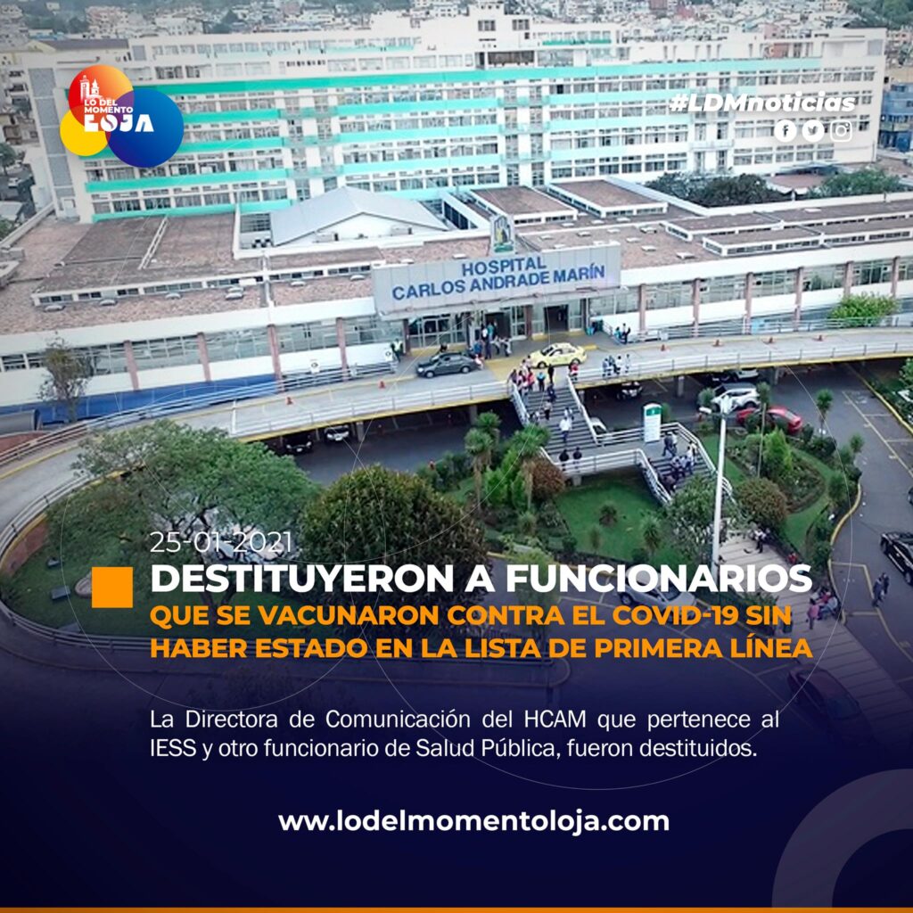 En redes sociales se denunció la fotografía de una funcionaria del IESS y otro del MSP siendo vacunados, acción que fue contestada por el presidente del Consejo Directivo del IESS, Jorge Wated, informó que se procedió a la inmediata destitución de uno de los denunciados. “Ella no está en los listados que maneja el MSP y el IESS y no aceptaremos que nadie se meta por la ventana. La vacunación es estrictamente para quienes el MSP establezca y reforzaremos controles”.