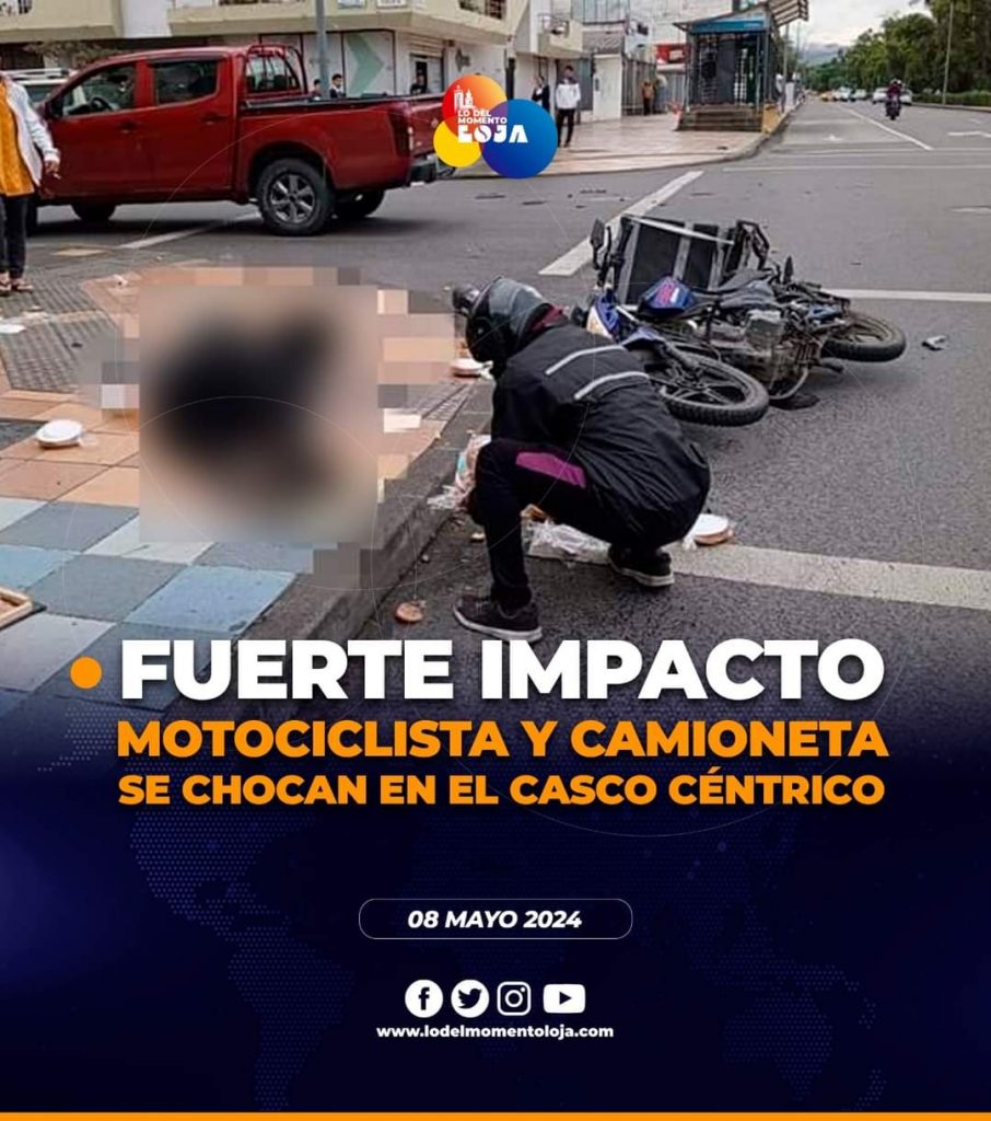 😱💥🏍️ ¡Se dieron duro! A la altura de la Av. Universitaria y Celica, se registró un accidente de tránsito entre una camioneta y una motocicleta, dejando como saldo varios daños materiales y una persona afectada. Aún se desconoce el estado actual de salud del motorizado.