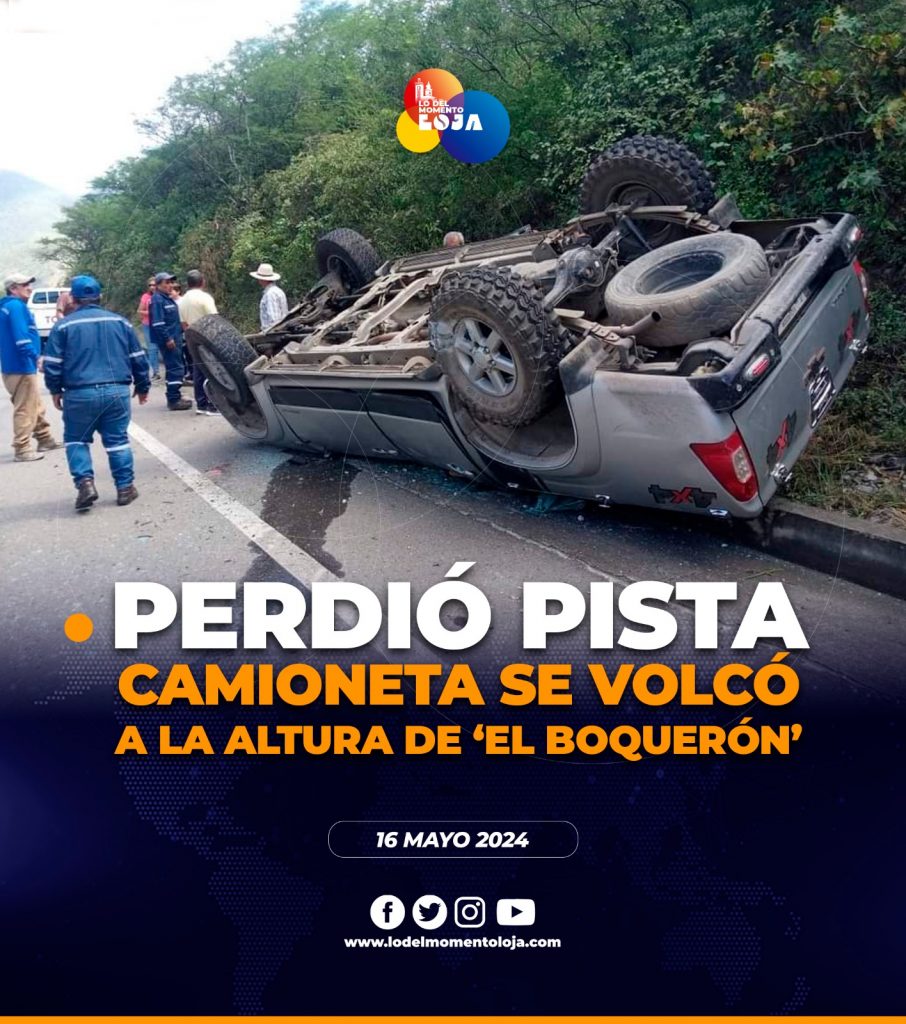 😱💥🛻 ¡Terrible siniestro! A la altura de El Boquerón, se registró un accidente de tránsito que involucra a una camioneta tipo Chevrolet, misma que habría perdido pista y tras un volcamiento, terminó en la cuneta de la vía. El suceso deja varios daños materiales y un herido.