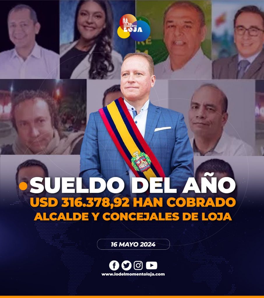 🤑🏢❌ ¡Un año y el sueldo puntual! Ha pasado el primer año de gestión o el primer 25% del periodo de la alcaldía de Franco Quezada y los once ediles, que durante este periodo ya acumulan más de un cuarto de millón de dólares solo en sus salarios desde que asumieron sus cargos, dejando más dudas que aciertos en cuanto al trabajo plasmado en pro de los lojanos. El alcalde que recibe un salario mensual de USD 4.144,91, hasta la fecha ha ganado USD 49.738,92 en doce meses, por otro lado, los ediles tienen un sueldo de USD 2.020, acumulando ya USD 24.240,00 cada uno; a Loja le ha representado un gasto de USD 316.378,92. ¿Será justificado su sueldo o no?