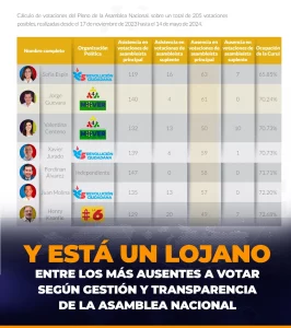 😅🫣📊 ¡Los más vagos! La Fundación Ciudadana y Desarrollo (FCD Ecuador) ha emitido un informe de la Asamblea Nacional, en cuánto a la ausencia de los asambleístas en el curul.