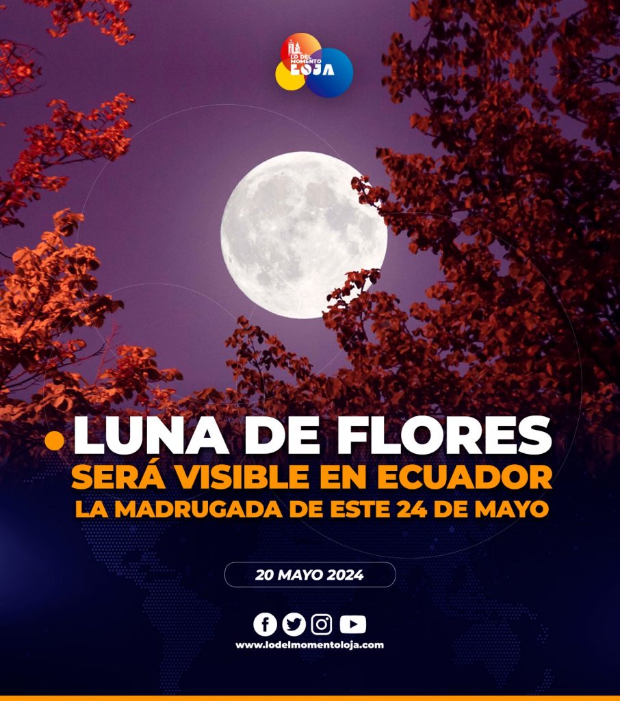 🌙💐🔭 ¡Evento astronómico! La denominada ‘Luna de Flores’ es una superluna que estará en su perigeo, cuándo la órbita esté más cercana a la Tierra y será visible la noche del jueves 23 y madrugada del viernes 24 de mayo. De acuerdo al Observatorio Astronómico de Quito este evento que si podrá ser observado desde todo el territorio ecuatoriano. La luna marca la época de la primavera en el hemisferio norte; cuando se produce el florecimiento de la naturaleza, sus las plantas y árboles.