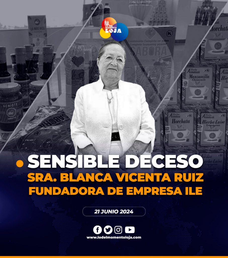 ✝️👩🏻🕊️ ¡Triste noticia! Ante el lamentable deceso de la reconocida Sra. Blanca Vicenta Ruiz Aguilera, fundadora de la Industria Lojana de Especierías (ILE), cómo empresa, expresamos nuestras sinceras condolencias a sus allegados y familiares.