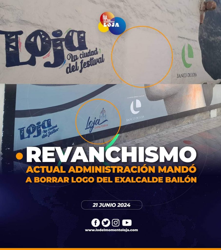 🎭🖌️🖼️¡Capaz que pone su logo! Varios murales de la ciudad de Loja que forman parte del circuito del Festival de Artes Vivas, que se realizaron en administraciones anteriores y hasta de otras obras de la ciudad, se han enviado a borrar sus logos, un acto comparable con lo que hacía el expresidente Lenin Moreno y Guillermo Lasso. Ante esto, desde hace varios días, trabajadores del GAD se han dado la tarea de hacerlo. “Es lamentable conocer la falta de visión política de nuestras autoridades” expresó el ciudadano que hasta envió fotografías del suceso. ¿Qué opina la ciudadanía?