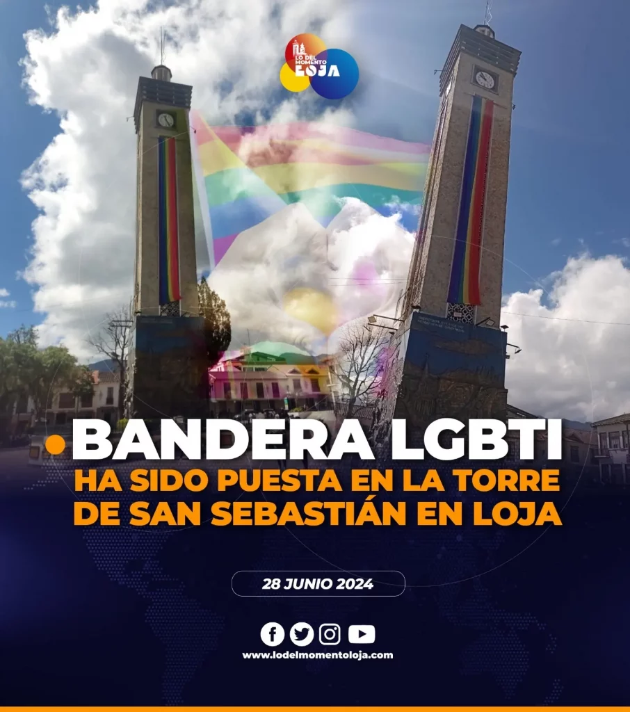 ℹ️🏳️🌈🤨¡Municipio les apoya! A pesar de Loja ser una ciudad netamente religiosa, en la torre de San Sebastián de la ciudad de Loja han colocado una bandera gigante del movimiento LGBTI, misma que también está en el Municipio de Loja, y todo esto, obedece a unas solicitudes que se le habrían hecho al alcalde Franco Quezada y contaban con la probación de la autoridad, en días pasados, también se realizó una marcha y varias actividades relacionadas al denominado “mes del orgullo LGBTIQ”.