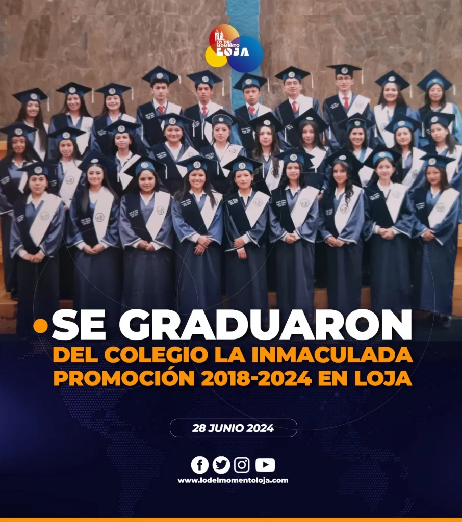 👏🏻👩🏻🎓🥇¡Lo hicieron bien! La mañana de hoy se llevó a cabo la séptima quincuagésima promoción 2018-2024 del Colegio La Inmaculada en la ciudad de Loja, aquí se graduaron 114 alumnas y 5 alumnos, la gran mayoría con catorce años dentro de la institución, al evento, llenos de alegría asistieron alumnas, familiares y allegados a las nuevas bachilleres de la república del Ecuador que buscarán seguir formándose y ponerse al servicio de la sociedad en general. ¡Felicidades y bendiciones!