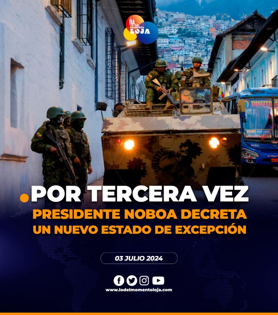 😱📑✒️ ¡Busca militarizar las calles! El presidente de Ecuador, Daniel Noboa, decretó un nuevo estado de excepción por 60 días en seis provincias del país (Guayas, Los Ríos, Manabí, Orellana, Santa Elena y El Oro, junto con el municipio de Camilo Ponce Enríquez (Azuay). Según el mandatario ecuatoriano, la medida busca enfrentar la constante violencia atribuida a bandas de crimen organizado y la crisis de seguridad que ha enfrentado el país suramericano durante los últimos meses.