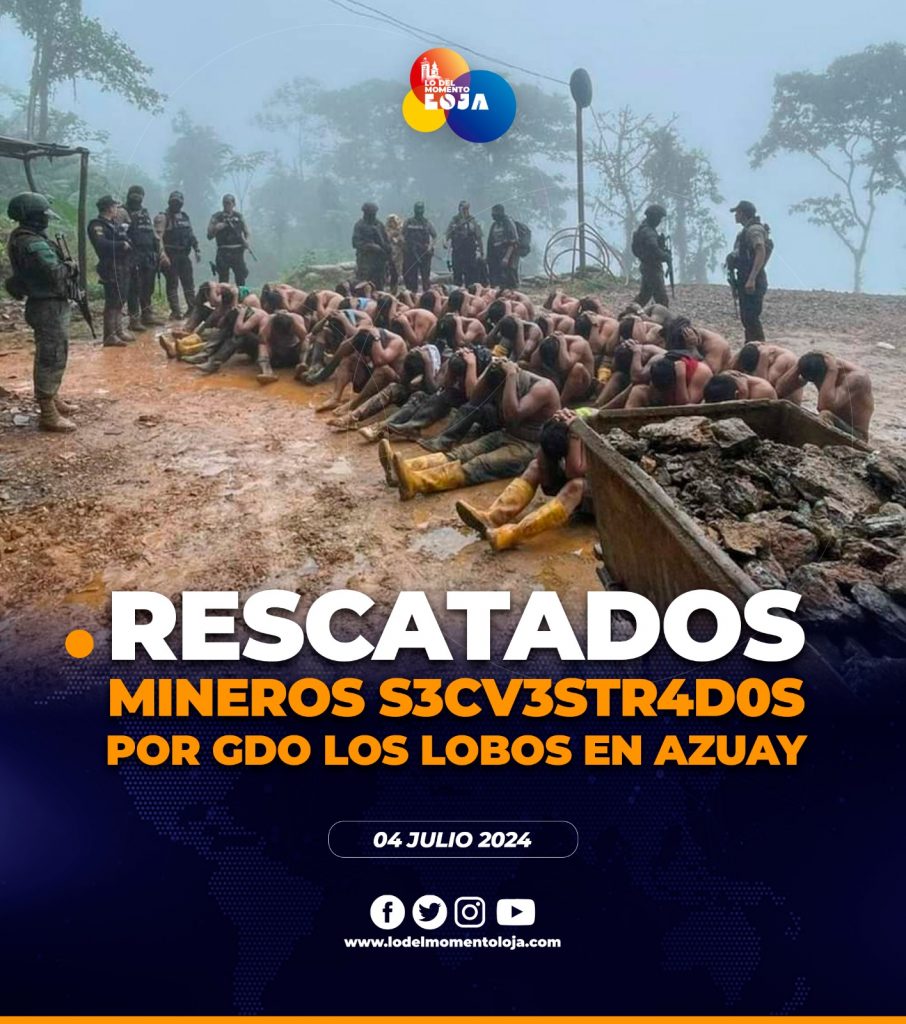 🪖⛓️👥 ¡Fueron liberados! Un total de 47 trabajadores mineros fueron liberados, tras haber permanecido secuestrados por un grupo de delincuencia organizada, quienes se habían tomado la mina ‘Punto Dorado’, del sector Santa Martha del cantón Camilo Ponce Enriquez. Además, de la detención de miembros del GDO Los Lobos, se decomisaron: 7 fusiles, dos pistolas, 4 alimentadoras de pistola para pistola y fusil, y municiones calibre 9mm, 5.56 y 7.62.