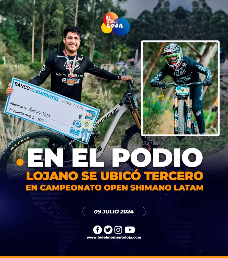 👏🏻🚴🏻♂️🏅 ¡Orgullo total! El ciclista lojano, Augusto Vaca, logró adjudicarse en el tercer lugar de la Categoría Elit Pro, en el Campeonato Latinoamericano Open Shimano Latam, que se realizó en la ciudad de Cuenca, el pasado 07 de julio del 2024.